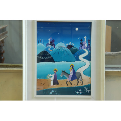 "Fuga in Egitto" 1974 Olio su cartone telato (cm 40x30) Firmato e datato in basso a destra. In cornice.