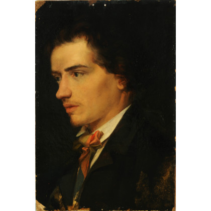 Maestro del sec.XIX "Ritratto di giovane uomo con foulard" olio su cartone (cm 41x27). In cornice dell'epoca