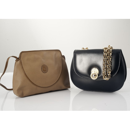 Trussardi e Celine: lotto composto da due borse con tracolla in pelle color blu e beige, dettagli in metallo dorato (difetti)