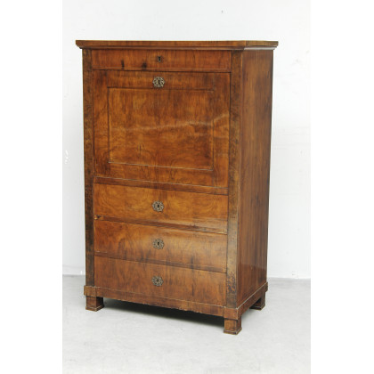 Secretaire in noce lastronato e radicato, cassetto nella fascia superiore, anta ribaltabile con cassettini e vano interno con tre cassetti. Lombardia fine sec. XIX (cm 87x136x48)