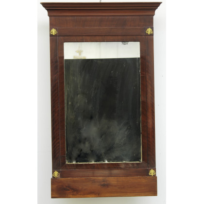 Specchiera in stile impero, lastronata in mogano, cimasa modanata (cm 110x75)(difetti)