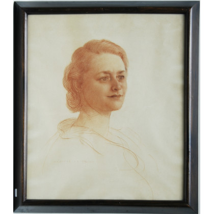 "Ritratto femminile" disegno a sanguigna (cm 54x46) Firmato in basso a sinistra. In cornice