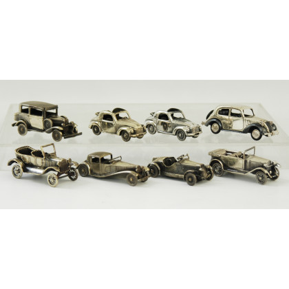 Lotto composto da 8 modellini d'auto d'epoca in argento (gr 800 ca)