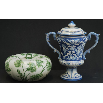 Lotto composto da una brocca biansata e una scatola con coperchio in ceramica (difetti)