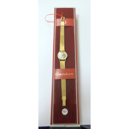 Orologio da polso da donna vintage Omega in oro giallo 18K. Movimento con carica manuale, solo tempo. Bracciale in maglia a tessuto in oro giallo. Circa 1960. Completo di confezione originale, in stato pari al nuovo. Peso lordo g. 31.1