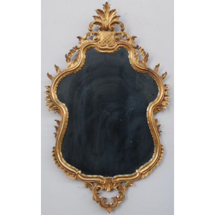 Specchiera in legno intagliato e dorato a volute e motivi fogliati (cm 130x76)