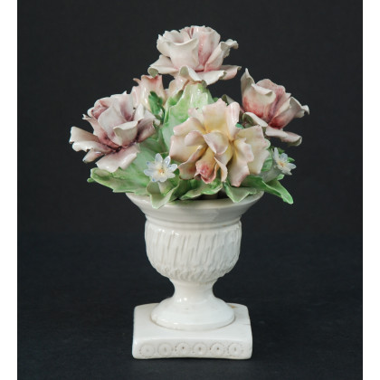 Manifattura italiana "Vaso con fiori" scultura in ceramica policroma (lievi difetti)