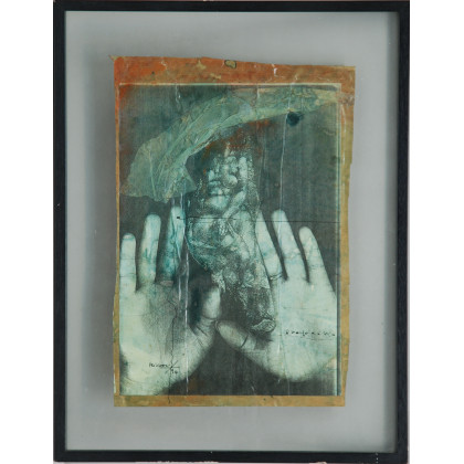 Firma indecifrata. "Mani" tecnica mista (cm 34x22) Firmata e datata, in cornice