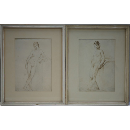 Ignoto. "Nudi femminili" coppia di disegni a matita e penna su carta (cm 26x18) In cornici