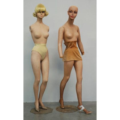 Lotto di due manichini in resina con basi in ferro. Anni '60 (h cm 177) (difetti e mancanze)