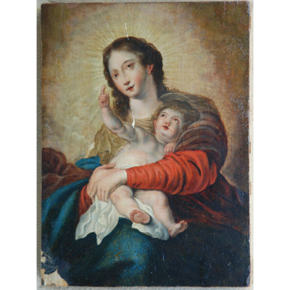 Ignoto. "Madonna con bambino" olio su tavola (cm 24,5x17) In teca (difetti)