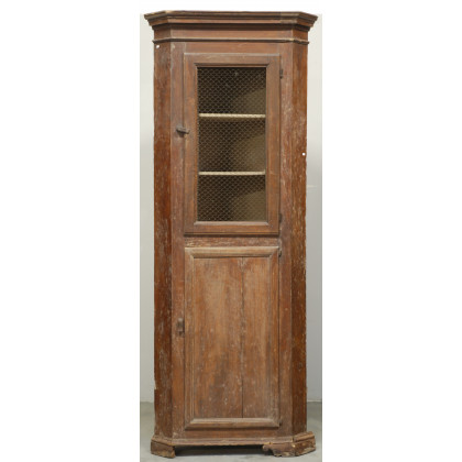 Antica angoliera rustica ad un'anta con grata e una riquadrata. (cm 56x196x56) (difetti e mancanze)