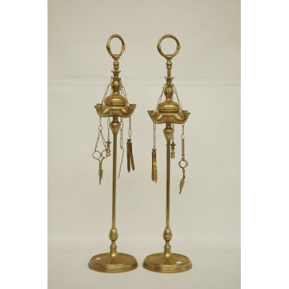 Coppia di lampade fiorentine in ottone con accessori