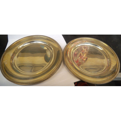 Gruppo di cinque piatti in argento con bordo cesellato a palmette, (gr. 750 circa)