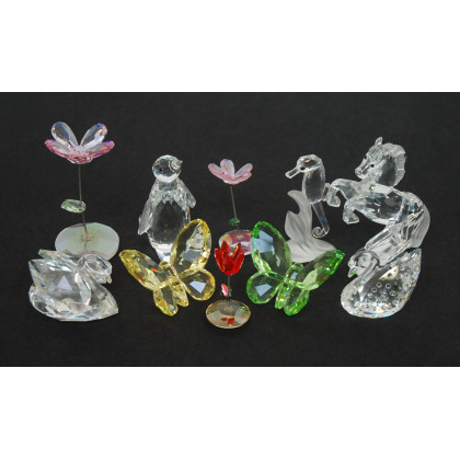 Lotto composto da trentanove oggetti raffiguranti animali ed altri oggetti in cristallo e uno in porcellana, misure diverse (difetti)