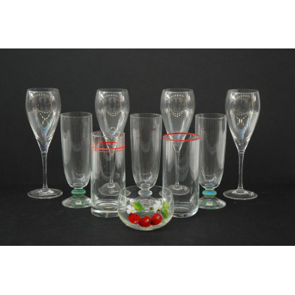 Lotto composto da numerosi bicchieri di diversa forma e decoro
