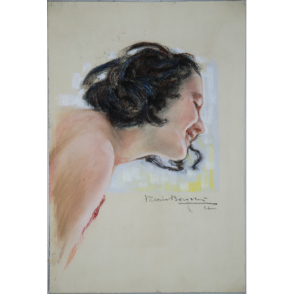 Firma indecifrata, "Ritratto femminile" 1932 tecnica mista (cm 38x27.5) Firmato e datato in basso a destra. In cornice