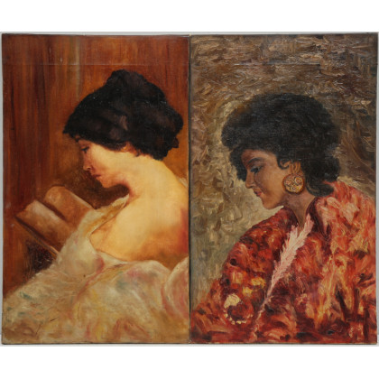 Ignoto. Inizio sec XX, "Ritratto femminile", coppia di dipinti ad olio su tela (cm 50x35) In cornici