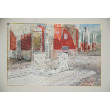 "Scorcio di Pompei" ,1876, acquerello (cm 25x37) Firmato, locato e datato in basso a destra. In cornice