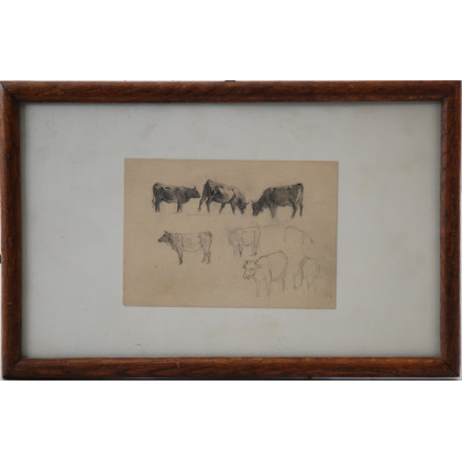 (attr.) "Studi per mucche" disegno a matita (cm 9x13) In cornice