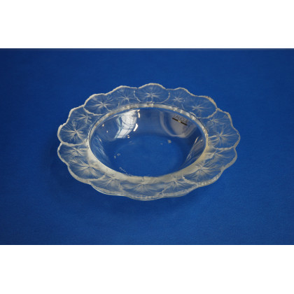 Manifattura Lalique, Francia anni Ottanta del sec. XX. Centrotavola circolare, decoro "Honfleur", in vetro trasparente e patinato, firmato a punta sotto la base "Lalique, France" (diametro cm 27)