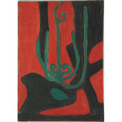 "Composizione" 1957 olio su tela (cm 70x50) Firmato e datato al retro (difetti)