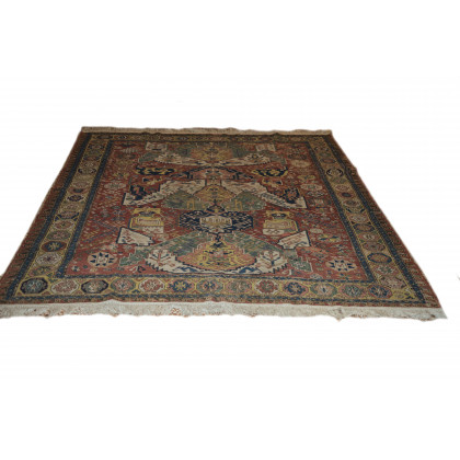 Tappeto Sumak Caucaso, sec. XIX, disegno geometrico in policromia nominato a draghi (cm 220x265) (difetti, rapature e buchi)