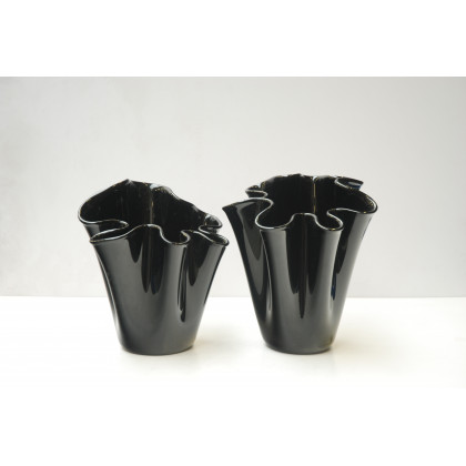 Coppia di vasi a fazzoletto in vetro nero (h cm 20 ca)