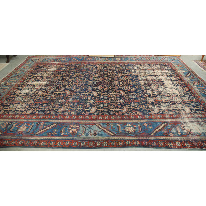 Tappeto Lilian, Persia, sec. XIX, decorato a rami fioriti su fondo blu (cm 355x248)(gravi difetti)