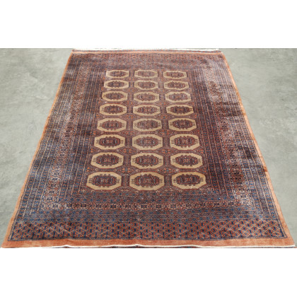 Tappeto orientale a fondo blu decorato a motivi geometrici (cm 187x126)