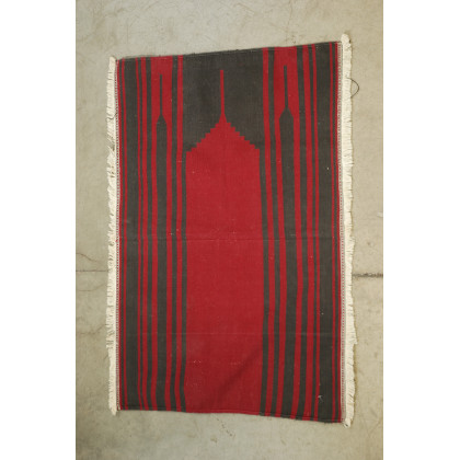 Preghiera Durrie, India, sec. XX, in cotone nei toni del bordeaux e nero (cm 110x73)(difetti)