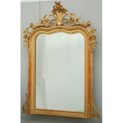 Caminiera in legno dorato con cimasa intagliata a motivi floreali non pertinente. Sec XIX (cm 170x115) (difetti)