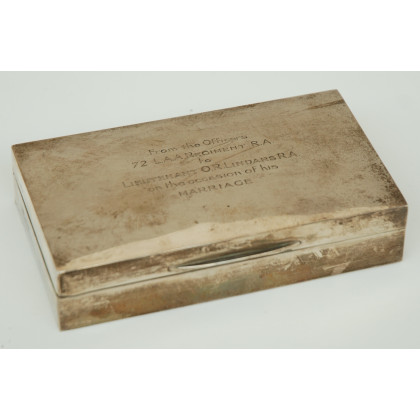 Portasigarette in argento con coperchio inciso da dedica. Punzoni inglesi