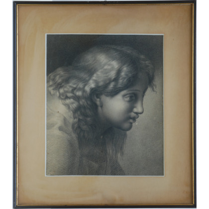 Scuola del sec XIX. "Figura femminile" disegno a matita (cm 35x30) In cornice