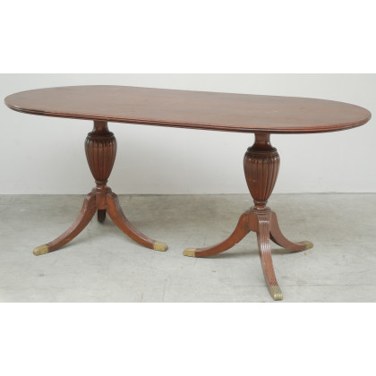 Tavolo da pranzo inglese con piano ebanizzato, due gambe tornite e scanalate poggianti su piedi scanalati (cm 185x79x96) (difetti)