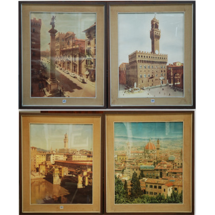 Lotto di cinque cornici contenenti fotografie di Firenze ed una contenente una riproduzione (difetti)