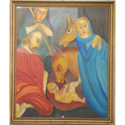 Firma indecifrata "Sacra famiglia" olio su tela (cm 120x100) In cornice (difetti)