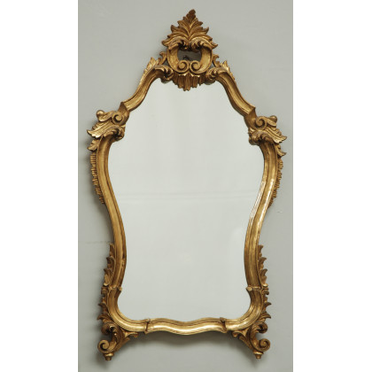 Specchiera di forma sagomata in legno dorato e intagliato a motivi vegetali.(cm 54x88)