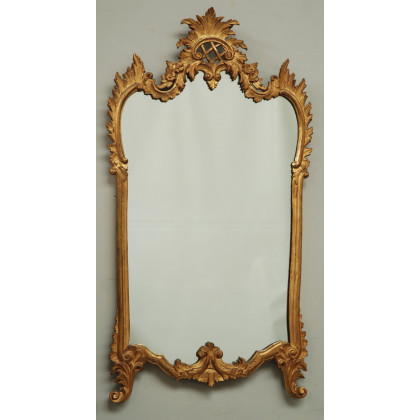 Specchierina di forma sagomata in legno dorato intagliato e traforata a fiori e foglie.(cm 100x55)