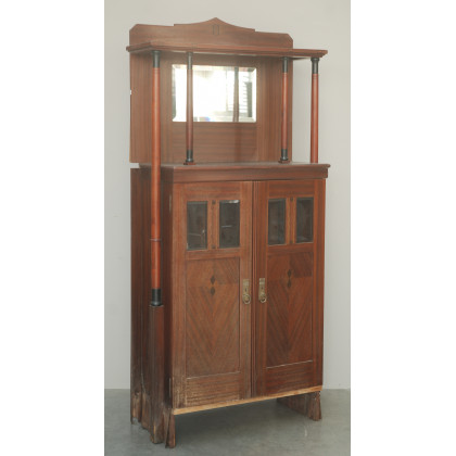 Vetrinetta di gusto secession a due ante impiallicciato in mogano a un ripinao. Esecuzione italiana, anni '10 del sec XX (cm 85x181x39) (difetti e restauri)