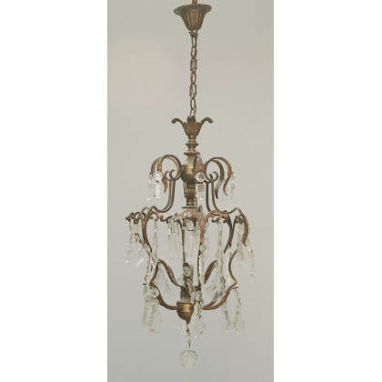 Lampadario a una fiamma in metallo dorato e gocce in vetro