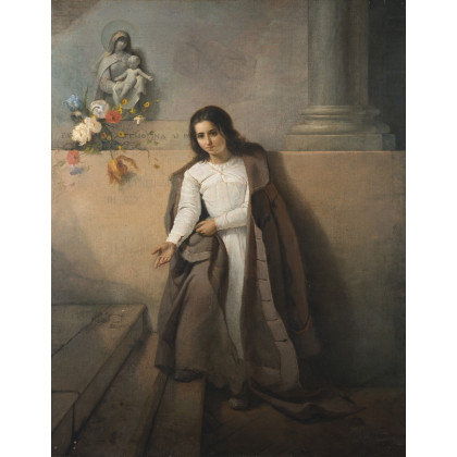 "L'elemosina" olio su tela (cm 121.5x94) Firmato e datato 1856 in basso a destra. In cornice