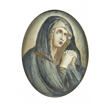 Scuola dell'inizio del secolo XIX "Madonna orante" verre peinte ovale (cm 22x17) In cornice dell'epoca (difetti)