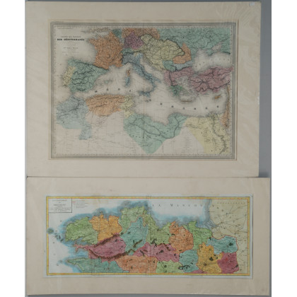 Lotto di due carte geografiche: nord della Francia e Mediterraneo