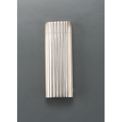 Accendini firmato Cartier placcato argento con corpo scanalato. Punzoni: CARTIER/PARIS/PLARGENT G/ 30 MICRONS/063635 (cm 7,00 x 2,70) peso lordo gr 106,30 (con astuccio) A silver-plated Cartier lighter. Stamped (with box)