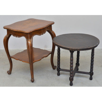 Lotto composto da due tavolini: uno con piano sagomato, l'altro tondo gambe tornite