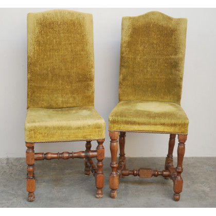 Lotto di due sedie diverse con gambe a rocchetto (difetti)