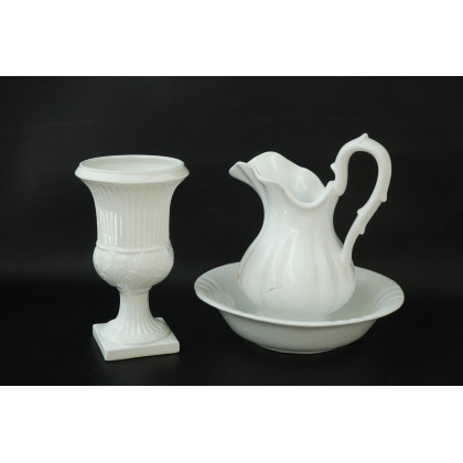 Lotto composto da una brocca con catino e un vaso in ceramica bianca