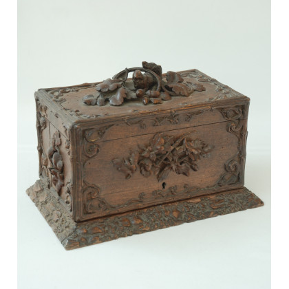 Scatola in legno scolpito a foglie volute e animali. Sec XIX (difetti e mancanze)