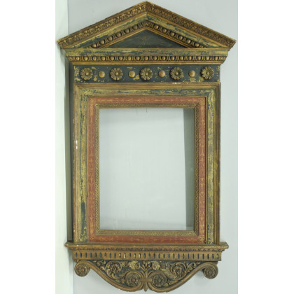Cornice a tempietto in legno dorato e laccato (cm 117x72) (difetti)